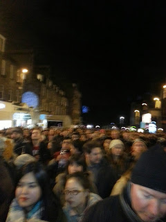 And only 5 arrests! As one woman said to me, explaining why "We're Scottish." Yes, the alcohol flows. And there are police. But overall, it's amazingly civilized and friendly and fun. My backpack was open and someone made a point of telling me. In New York, I probably would have been robbed.