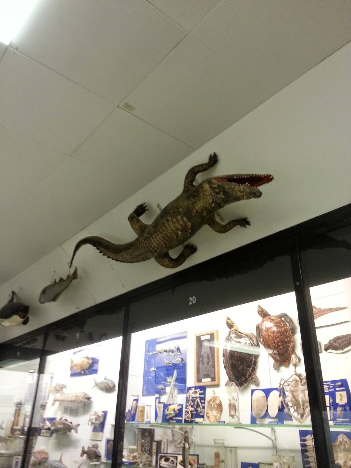 A gator mounted sideways up on the wall(not sure why).